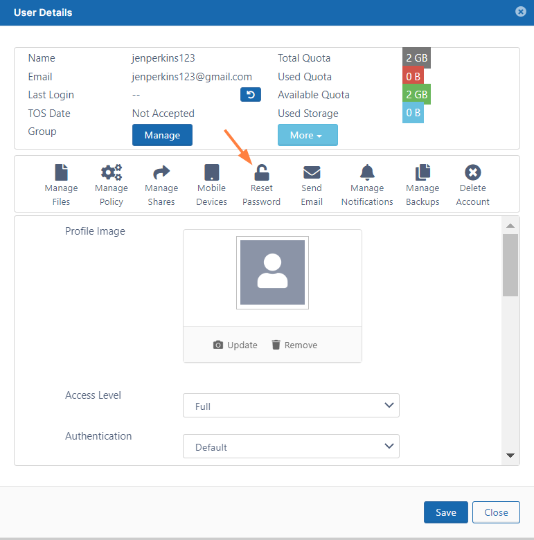 Click Reset Password.