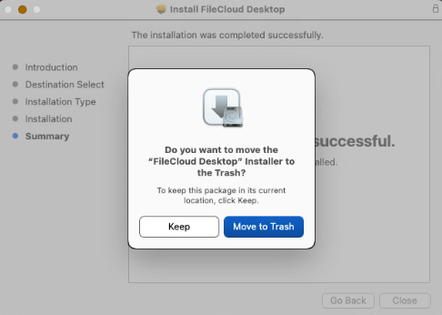 - Download FileCloud Desktop for macOS at https://www.filecloud.com/additional-downloads/. Then unzip and run FileCloudDesktopInstaller.pkg.