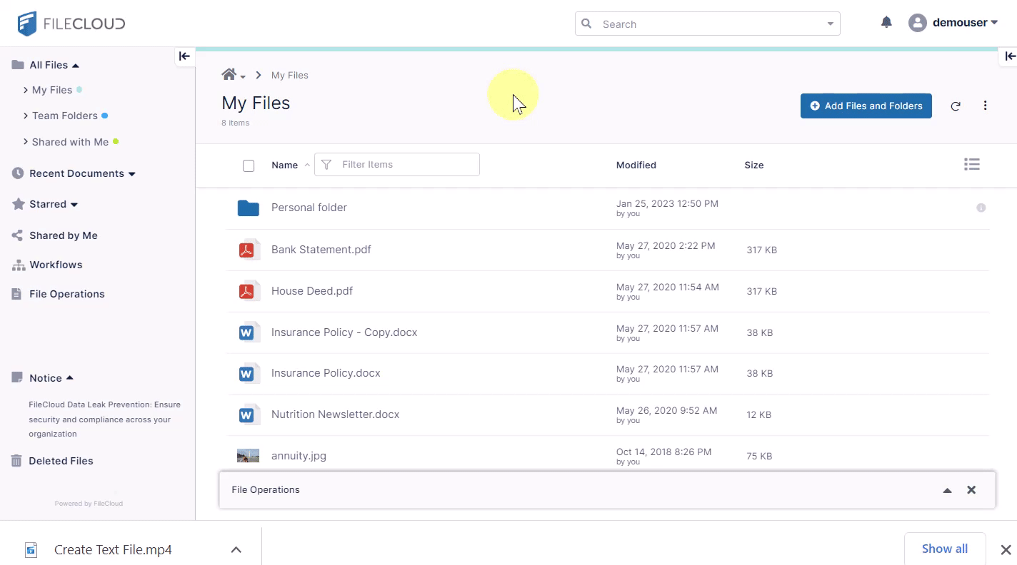 To rename a file or folder, hover over its row and click the More button, and select Rename. Enter the new name and click Enter.