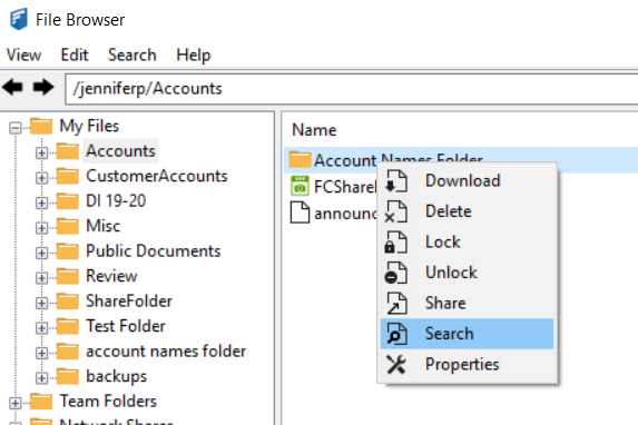 Search for a File or Folder in File Browser