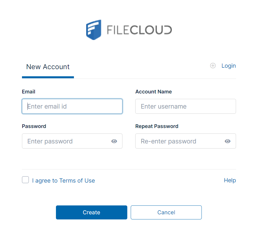- The new user uses the link to create their own FileCloud account.