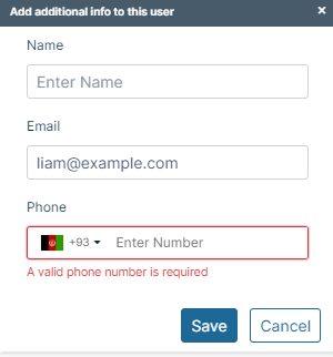 - To add or change display name or phone number for a user, click the i icon: