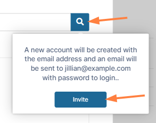 The system does not find the email address and displays an Invite button.
