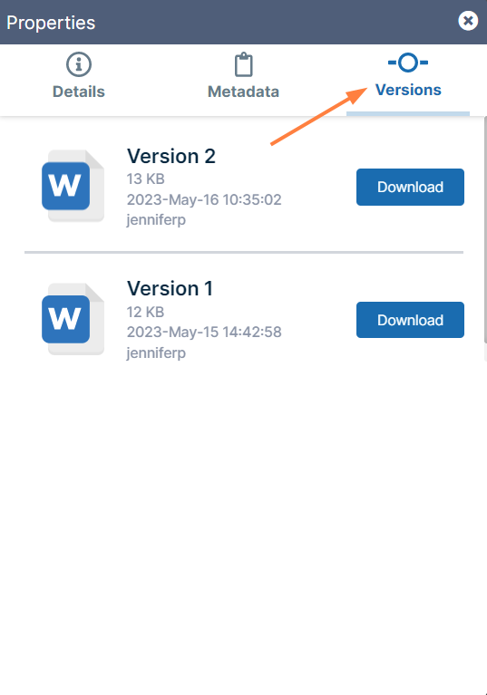 Manage file versions, and view file details and metadata.