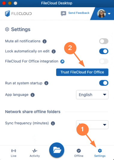 Confirm that you trust FileCloud for Office and enable it as shown in the following procedure.