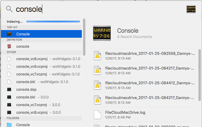 1. In the Spotlight window, type "console"