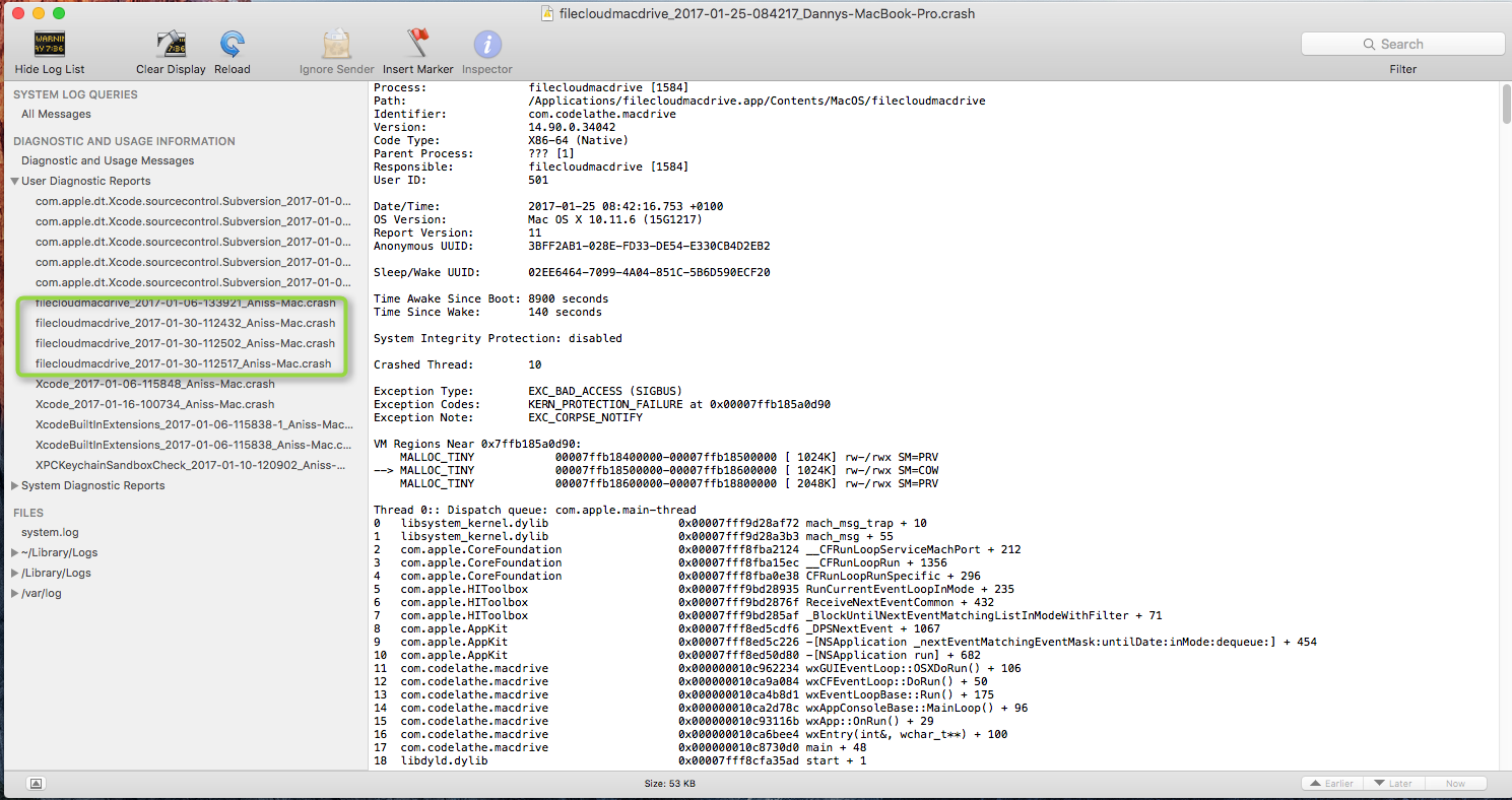 Viewing a Crash Report for Drive for Mac