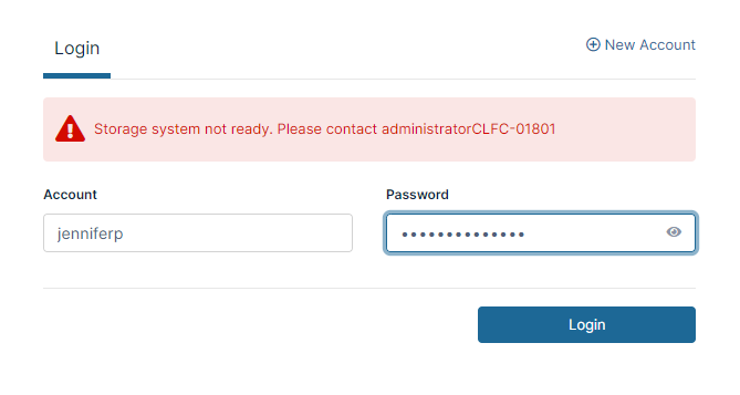 If a user tries to log in to the user portal and the storage system is not activated, the user sees the message: