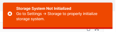 When an admin logs into the admin portal and the storage system is not activated, the admin sees the pop-up notification: