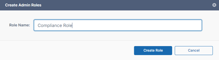 In the Manage Admin Roles screen, click Add new role. The Create Admin Roles dialog box opens.