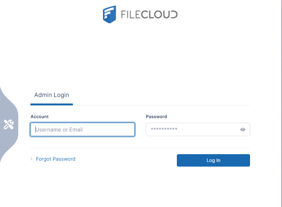 In your browser, access the FileCloud admin portal at http://<public_ip_address>/ui/admin/index.html.