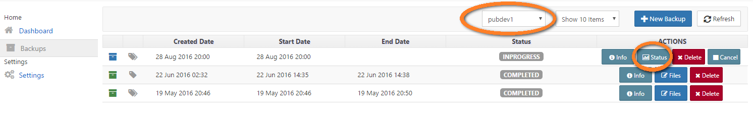 While monitoring backup progress, the following states may be encountered. The states of all jobs can be seen on the table under the 'Status' column.