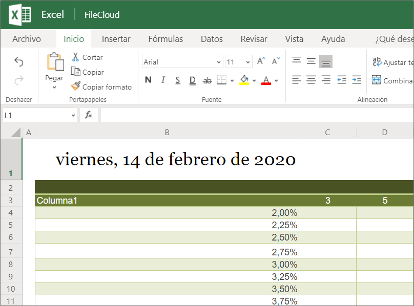 Now when you open a FileCloud document in Office online, the labels appear in the new locale, and if you add locale-sensitive features, like dates, they appear in the correct format. For example, the WOPI locale for the following document opened in FileCloud is es-ES: