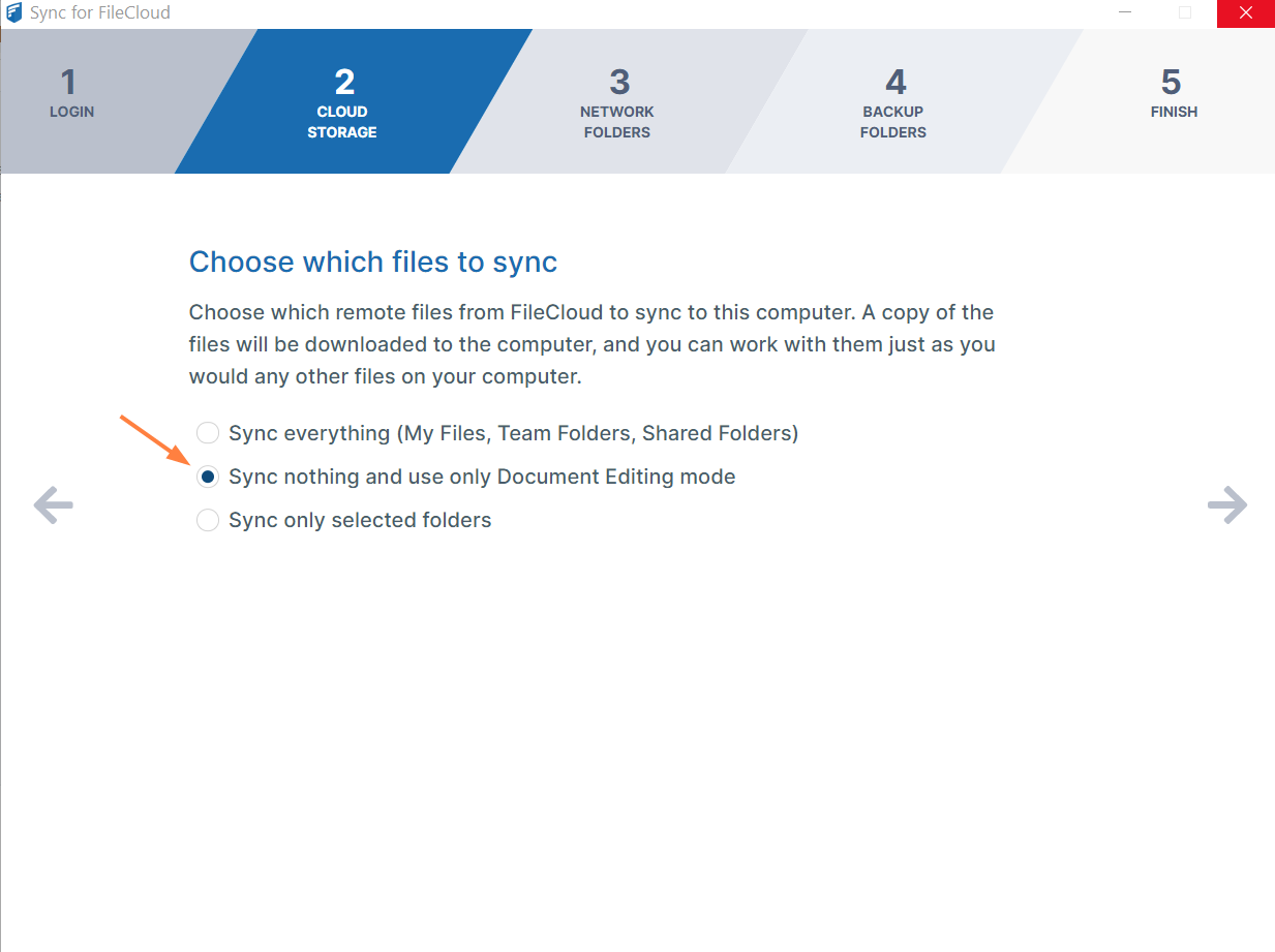 When setting up account information, you may select the option to disable syncing and only provide document editing support. If you leave it unchecked, you will be able to use Edit in Desktop as well as Offline Syncing.