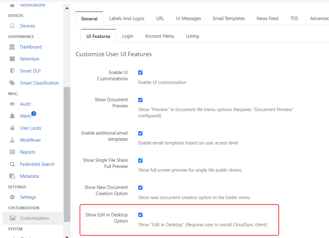 Edit in Desktop allows you to select a document file from the Web UI and automatically open it locally in its native document editor. Changes you save automatically appear in the cloud as new versions. This function is ideal for users who need to edit files on their desktops, but don’t want to install FileCloud Drive or sync all files to their local machine. It's also more convenient than downloading, editing, saving and uploading the saved version back to the cloud.