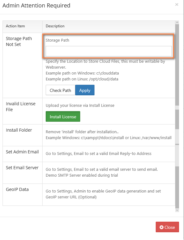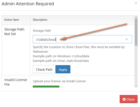When setting up FileCloud, a critical setting is the path where FileCloud stores its files.