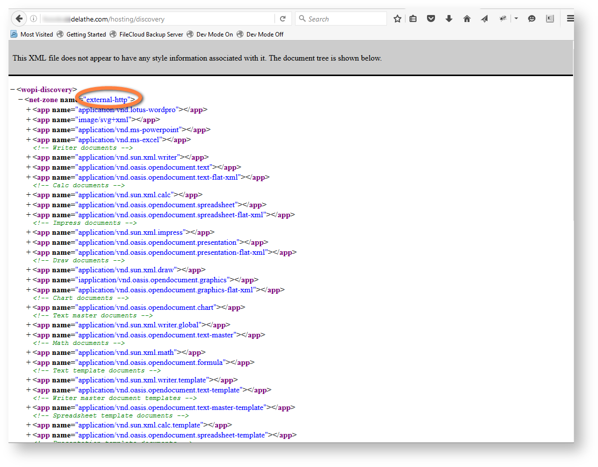 From the resulting page, note zone of editors to be used by FileCloud. The selection depends on the requirement of where the web edit feature will be used. In our case, we will choose "external-http", as we want to offer web-editing to external users.