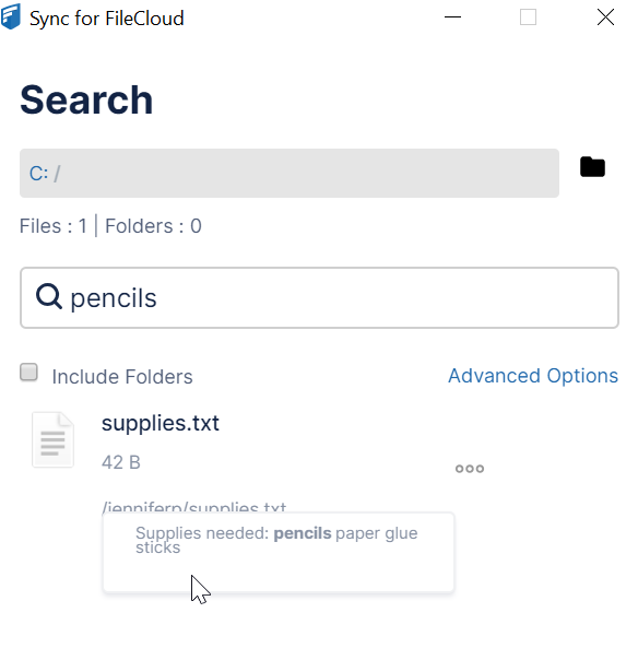 Note that your admin must have configured content search in FileCloud for content searches to work.