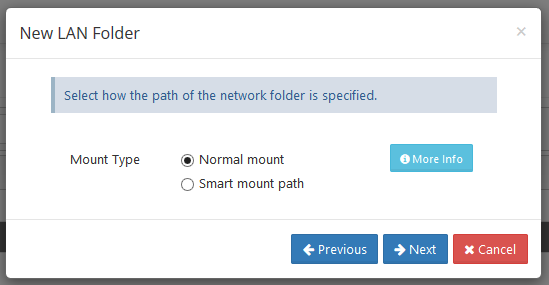 Select whether you want to use Normal mount paths or Smart mount paths. Read moreabout Smart mounts.