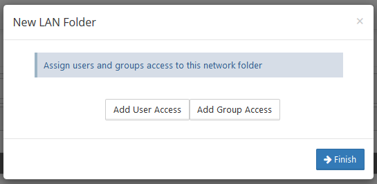 Once the Network Folder is created, you can assign users and groups to this folder. Click Add User Access to include users; click Add Group Access to add groups.