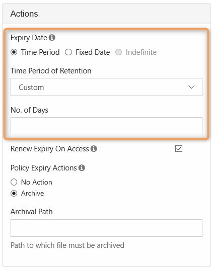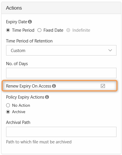 After the specified time period is reached, content gets moved to a specific folder or location (Archive)
