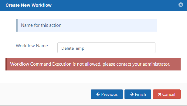 | Execute a command | { | Executes the command line. command_line: - Command line syntax to be executed. Admin is notified after the command runs. The placeholders. %who, %when, %path, %how, %filename are available for this action. To enable admin users to choose the Execute a command option, add: