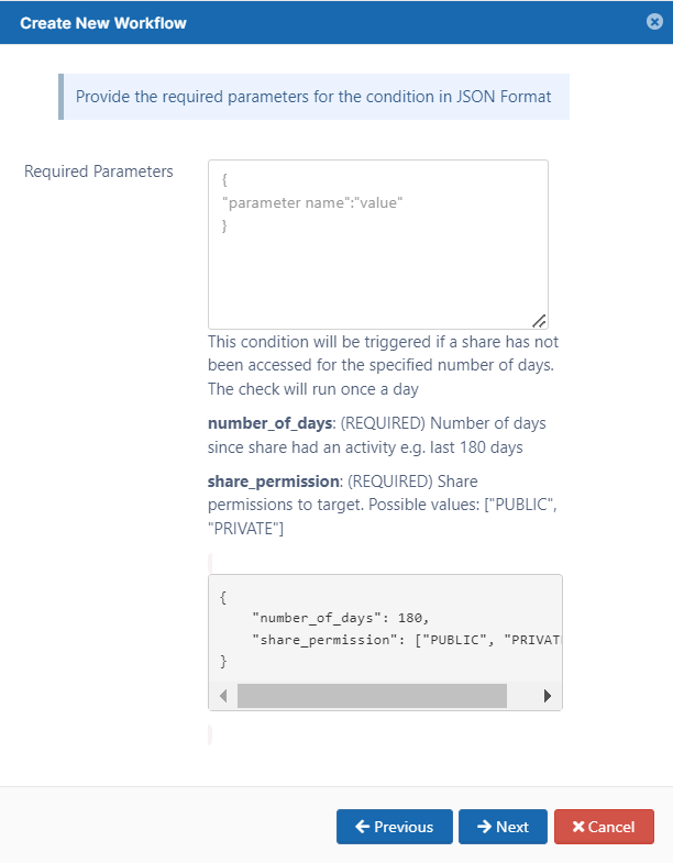 This condition will be triggered when a shared file or folder has not been accessed for the specified number of days.