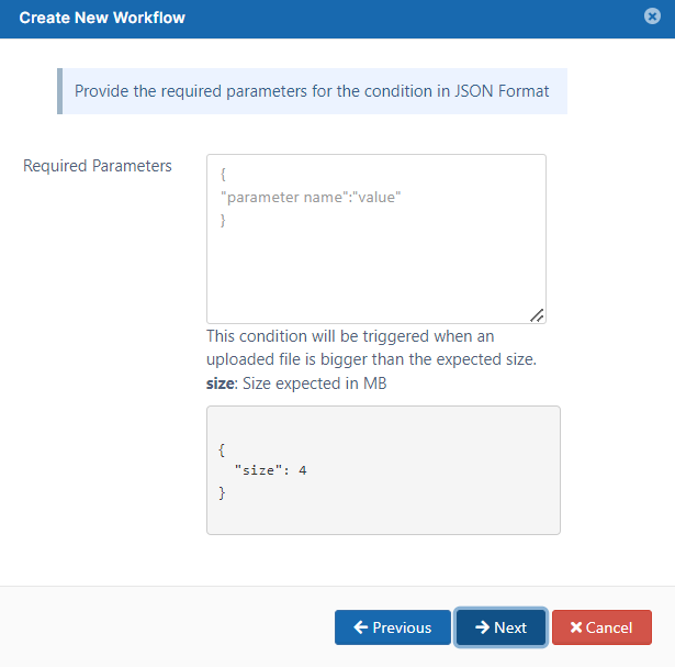 This condition will be triggered when an uploaded file is bigger than the size specified.