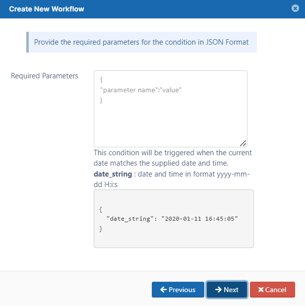 This condition will be triggered when the current time on the FileCloud Server matches the supplied time.