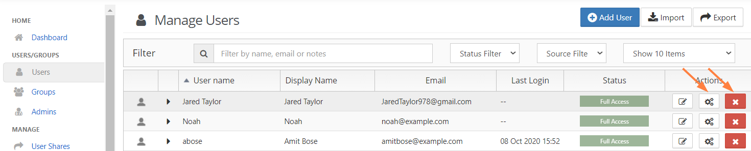 It is also possible to delete an account using the account properties panel by clicking on the settings icon (