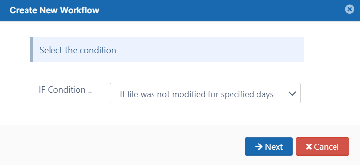 - Set IF Condition to If file was not modified for specified days, and click Next.