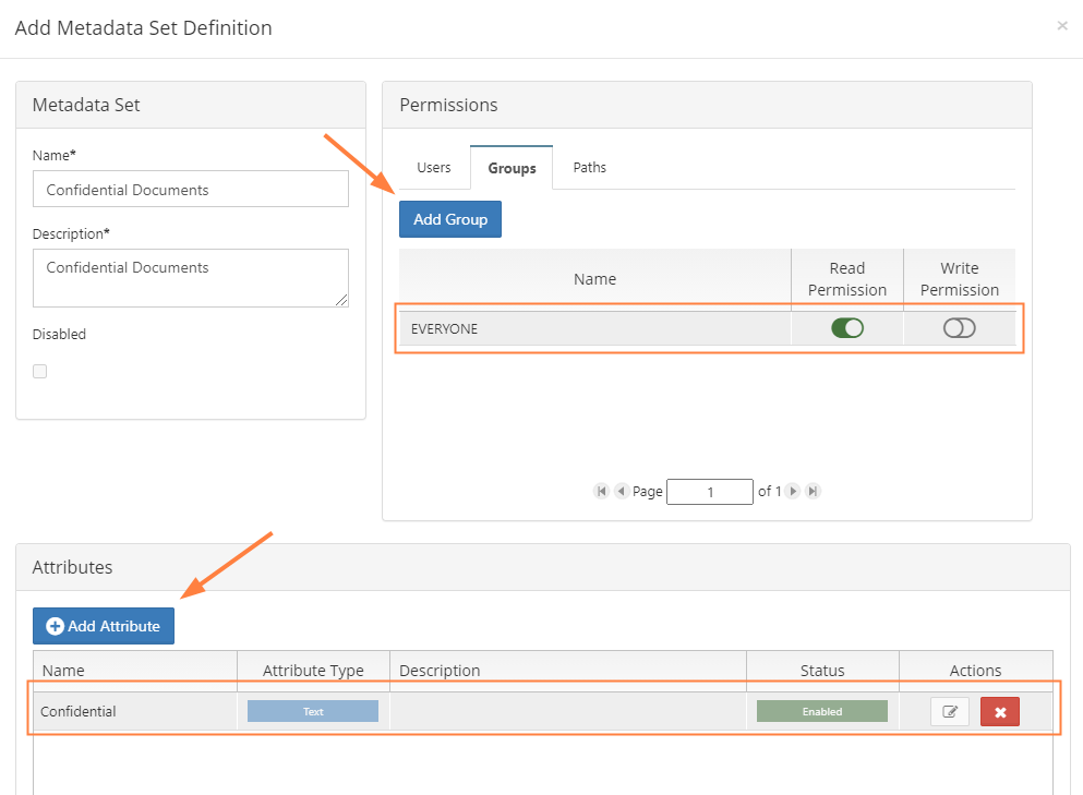 Create a metadata set named Confidential Documents with the attribute Confidential of type text.