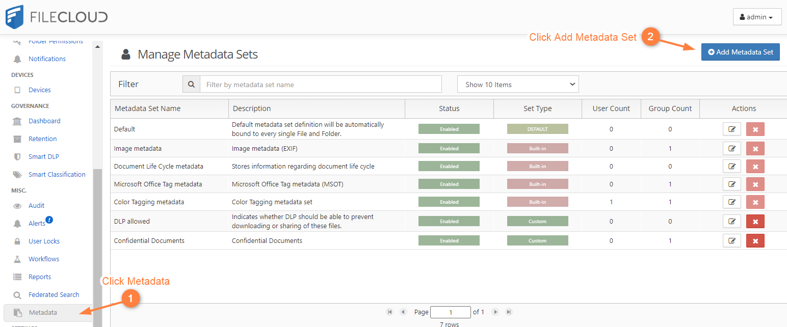 1. Create Metadata Set