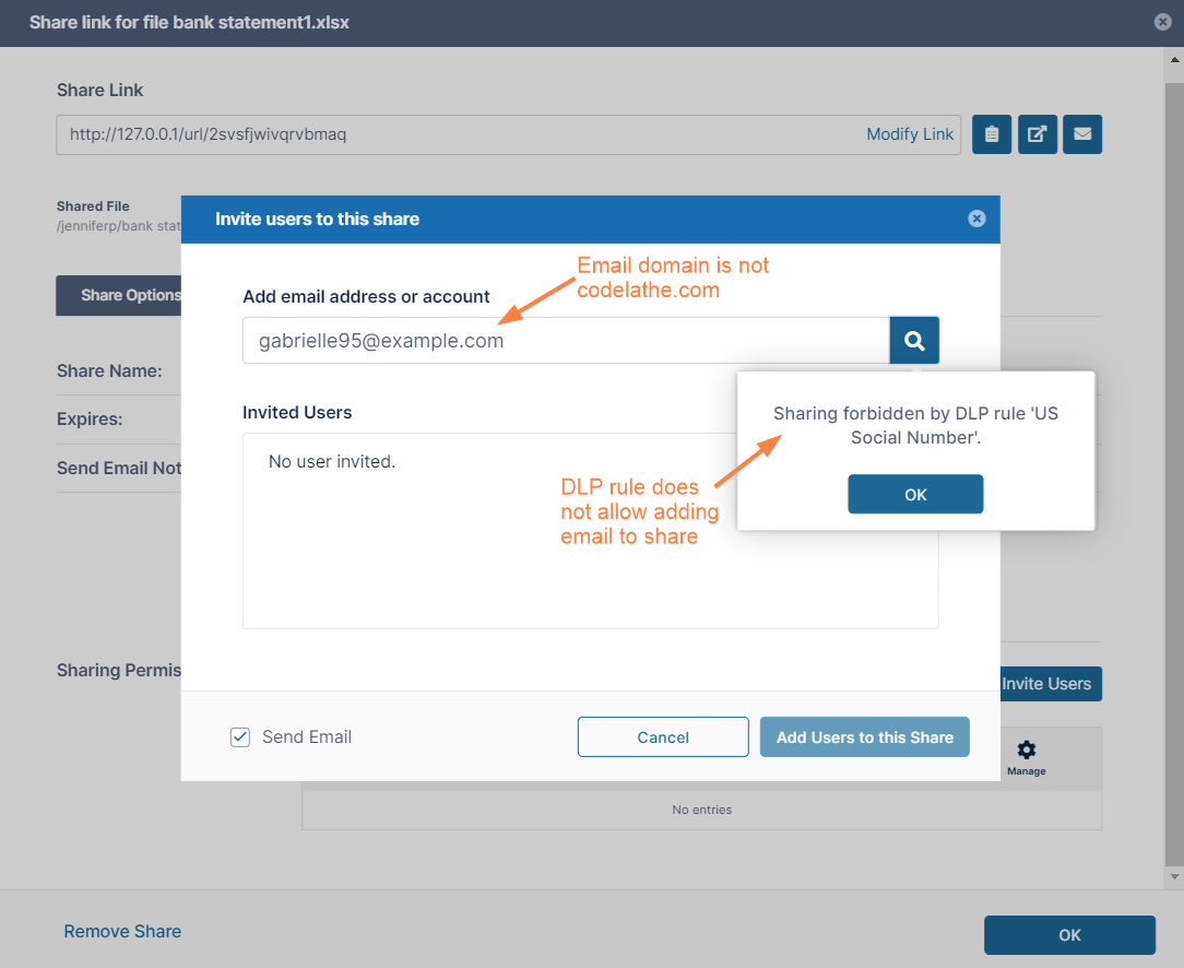 - Confirm that sharing is only allowed only with users from the domain "codelathe.com"
