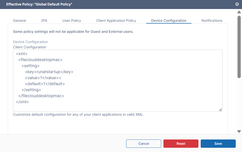 Device Configuration XML for FileCloud Desktop for macOS