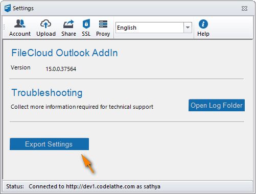 Supported parameters for the FileCloud Outlook add-in. All parameters are optional. Add one of more of these parameters (as XML tags) in the <settings> tags in the above XML.