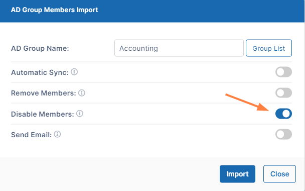 The ability to disable user account during import if the account is also disabled in Active Directory is available in FileCloud Server version 19.1 and later.