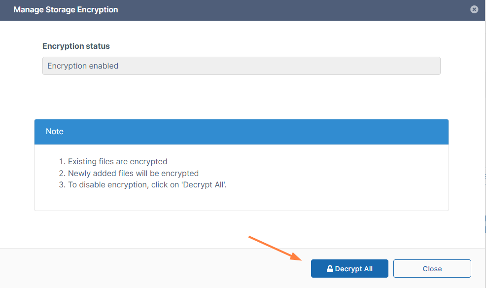 - In the Manage Storage Encryption dialog box, click Decrypt All.