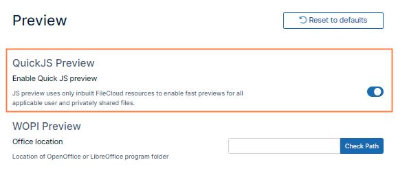 To enable preview using Quick JS: