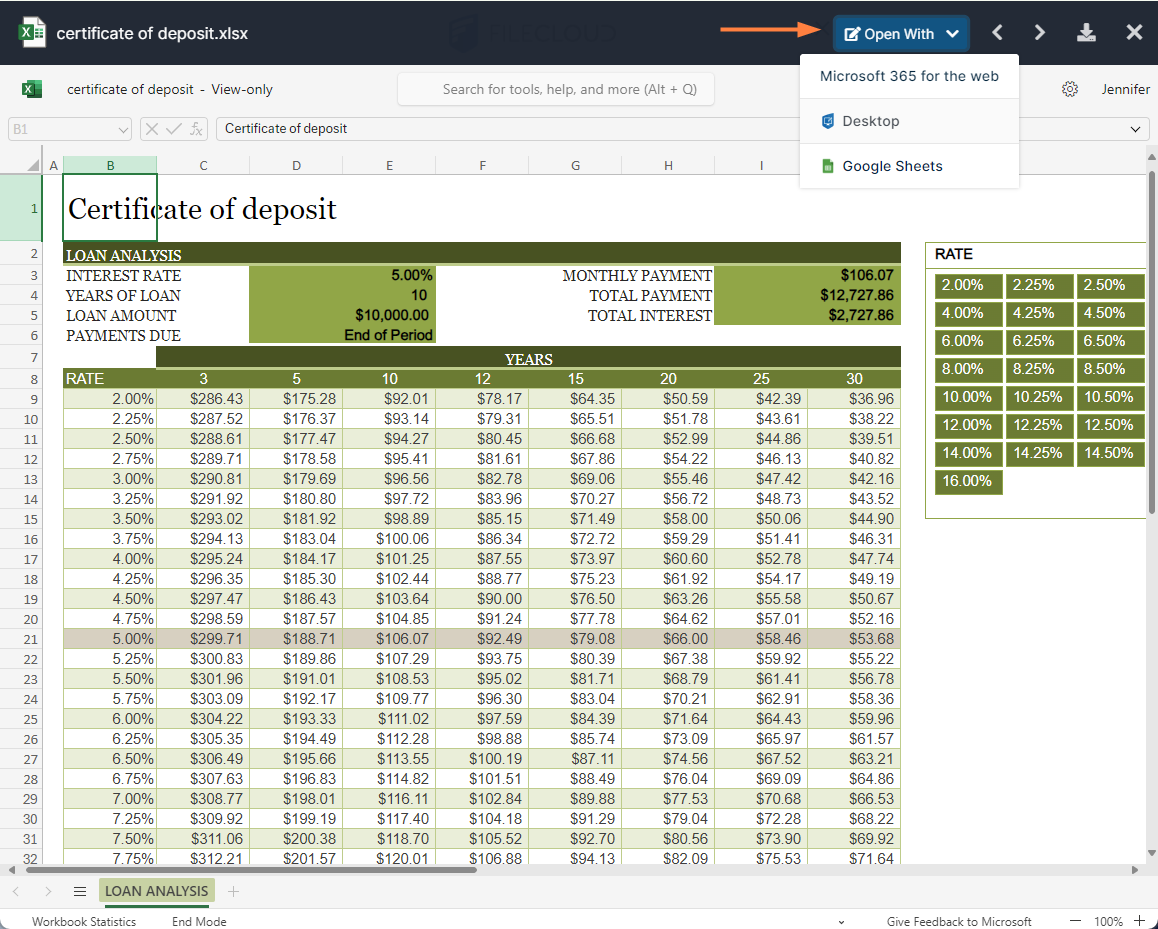 Administrators can configure online editing to allow FileCloud users to select any supported document and edit the document from within the User Portal.