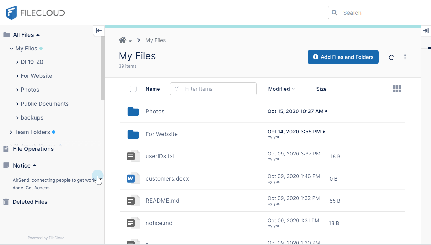 To download multiple files or folders, check each item and click Download at the top of the screen. The files are downloaded together in a zip file named in the format <Service Name>-selected-<datestamp>.zip, where Service Name is the name of your FileCloud server.
