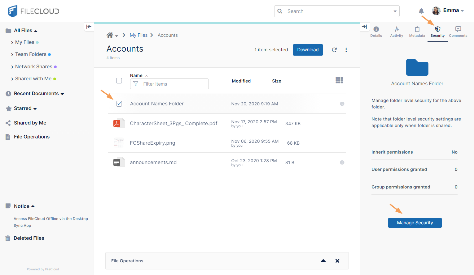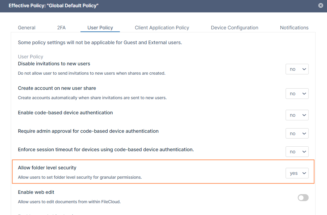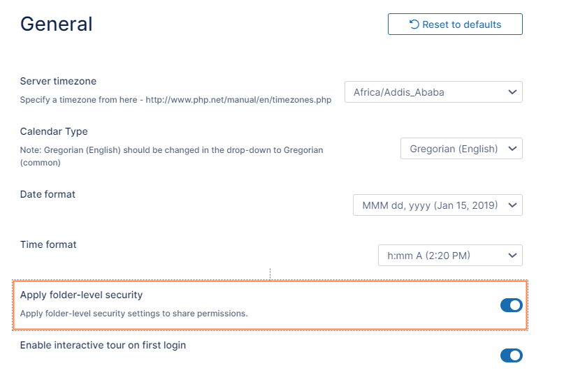 - Inheritance of folder-level permissions is turned on by default for all folders and sub-folders.
