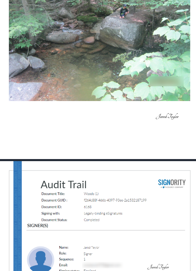 When audit details are attached to the eSignature document, the audit information follows the signature file in the eSignature pdf: