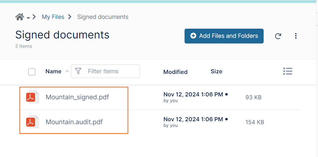 Now, the user can access the signed PDF in the FileCloud location specified for storing the signed document.