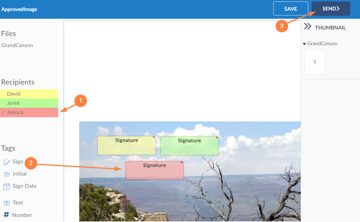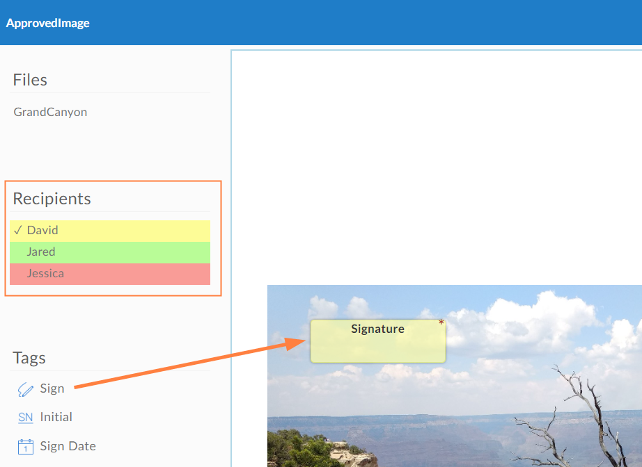 - If there are multiple recipients, check the other recipients and drag tags onto the document for them to fill in.