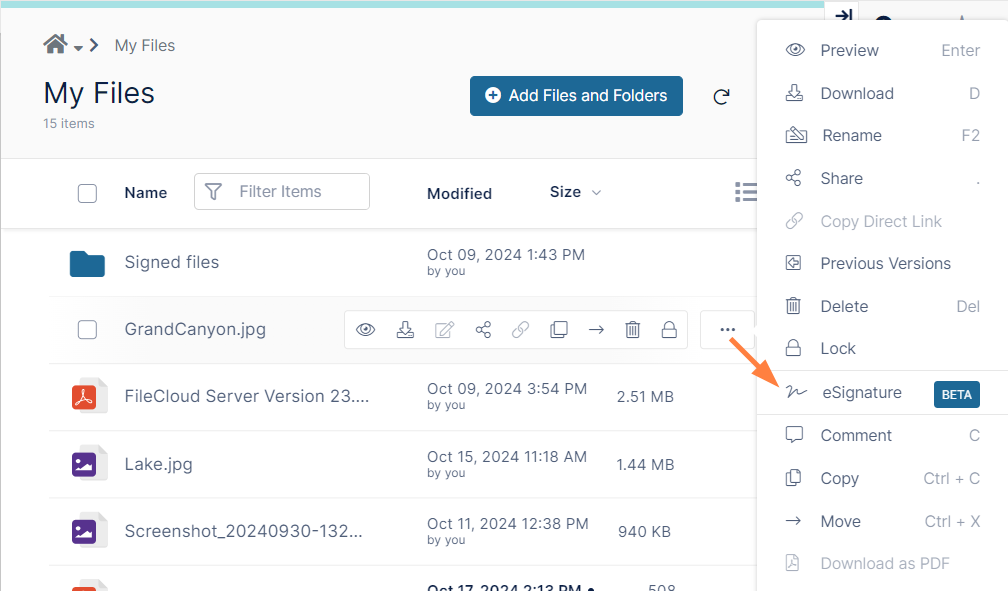 - FileCloud leaves the original files and copies them into a separate eSignature document PDF.