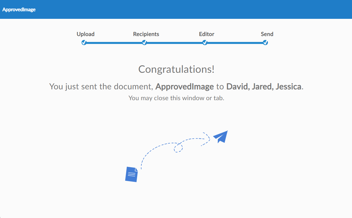In the following screenshot, after David and Jared sign the document, it is sent to Jessica.