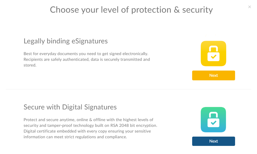 Note: The Secure with Digital Signatures option only appears if your plan includes digital signatures.