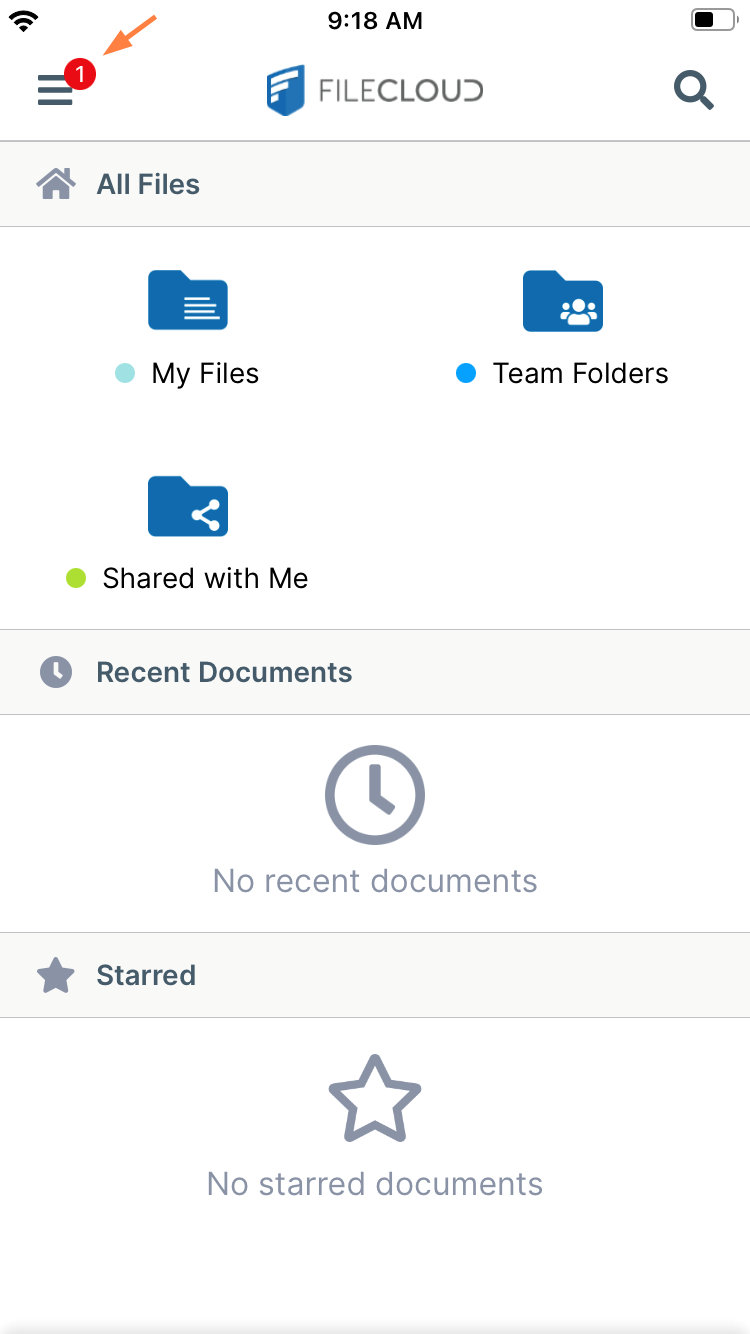 A red dot overlays the menu icon in the upper-left corner to indicate that a file is awaiting your approval. - Tap the menu icon.