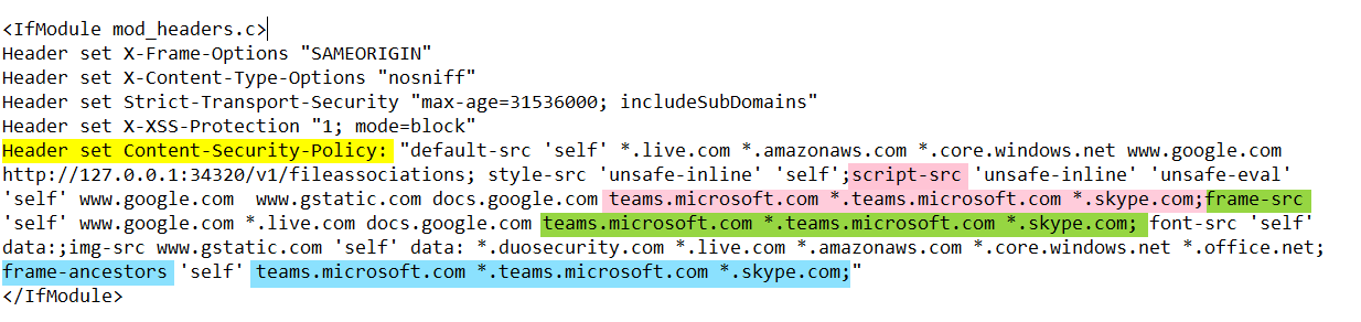 If you update FileCloud from a version prior to 21.2, you must manually add some configurations to the .htaccess file so that login to FileCloud from MS Teams works correctly. See Configuration after FileCloud upgrade, below.